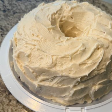 This simplistic cake brings back retro kitchen nostalgia with its buttery-rich cream cheese flavor and vanilla crisp crust.